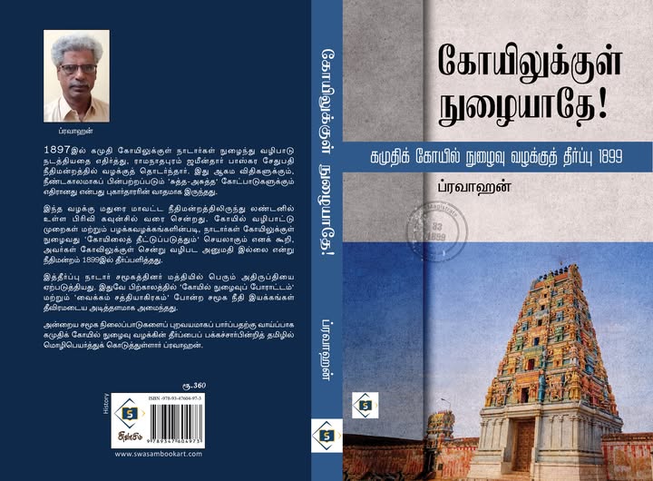 கமுதிக் கோயில் நுழைவு வழக்குத் தீர்ப்பு 1899 ![]() ஆய்வாளர் ப்ரவாஹன் எழுதிய இந்த ஆய்வு நூலின் இரண்டாம் பதிப்பு, சுவாசம் பதிப்பகத்தால் வெளியிடப்பட்டுள்ளது. சென்னை புத்தகக் காட்சியில் சுவாசம் அரங்கில் (536-537) இந்நூல் கிடைக்கும். விலை: ரூ. 360/- ---பக்தி இலக்கியங்களில் பாவை நோன்பாகப் பரிணமித்த சங்ககாலத் தைந்நீராடல் மரபுக்கு அடிப்படையாக இருந்த நம்பிக்கைகள் என்ன என்பது குறித்த என்னுடைய கருத்துகள்...- - -<தொடர்ச்சி> - - -அக்ஷய த்ரிதியை என்ற நிகழ்வுக்கு என்ன வரலாற்றுப் பின்னணி இருக்கின்றது என்பது பெரும்பாலானோருக்குத் தெரியாது. கேரள மாநிலத்தில் ஓணம் விழாவும் தமிழகத்தில் தைப் பொங்கலும் கொண்டாடப்படுவது போல மராட்டிய மாநிலத்தில் அக்ஷய த்ரிதியை முதன்மையான ஒரு விழாவாக நெடுங்காலமாகக் கொண்டாடப்பட்டு வருகிறது.- - -<தொடர்ச்சி> இந்தியா "தாழ்வுற்று வறுமை மிஞ்சி விடுதலை தவறிக் கெட்டுப் பாழ்பட்டு நின்ற'' காலகட்டத்தில், "நேரங் கெட்ட நேரத்தில்'' மேற்கொள்ளப்பட்ட காலங்கள் பற்றிய கணக்கீட்டில் "தை மாதம்தான் தமிழர்களின் புத்தாண்டுப் பிறப்பு'' என்ற தவறான முடிவு விடையாகக் கிடைத்ததில் வியப்பில்லை. சார்பு நிலையால் ஏற்படும் மனமயக்கங்களில் ஆழ்ந்துவிடாமல் 'சுதந்திர'மாக ஆராய்ந்தால் கிடைக்கும் விடை: "சித்திரையில்தான் புத்தாண்டு.''- - -<தொடர்ச்சி> - - - ஸ்காட்லாந்தைச் சேர்ந்த ராபர்ட் கால்டுவெல் (கி.பி. 1814-1891), லண்டன் மிஷன் சொசைட்டி பிரச்சாரக் குழுவின் சார்பில் இங்கிலாந்திலுள்ள கிளாஸ்கோ பல்கலைக்கழகத்தில் மொழியியல் துறையில் படித்துப் பட்டம் பெற்றார். இந்தியாவில், குறிப்பாக – திராவிட தேசத்தில் தமது சமயப் பணியை மேற்கொள்ளும் செயல் திட்டத்துடன்தான் லண்டன் மிஷன் இவரை மொழியியல் கற்கச் செய்தது.- - -<தொடர்ச்சி> கிறிஸ்தவ மதமாற்ற சூழ்ச்சிகளின் ஒரு கண்ணியாக விளங்கிய ஒரு நபரைக் குறித்து இரண்டு நூற்றாண்டுகளுக்குப் பிறகு இப்படி ஒரு பிம்பத்தை உருவாக்க முயல்வது என்பதே அதே மதமாற்ற அரசியலின் தொடர்ச்சி அன்றி வேறில்லை. தமிழ்ஹிந்துவில் எஸ். இராமச்சந்திரன், அ. கணேசன். எஸ். இராமச்சந்திரன் எழுதிய சித்திரையில்தான் புத்தாண்டு கட்டுரையை எந்திரப் பெண் குரலில் கேட்க... எஸ். இராமச்சந்திரன் எழுதிய கட்டுரைகள் முத்தூற்றுக் கூற்றம் - கள ஆய்வு வல்லம் பிரகாரப் போரும் வெங்கலராசனும் நாஞ்சில் குறவன் என்பவன் யார்? கறுப்பு வெள்ளை சிவப்பு கிழக்கத்திய சாமி கதையும் சில வரலாற்று உண்மைகளும் பகுதி-5 பகுதி-6 பகுதி-7 பகுதி-8 |